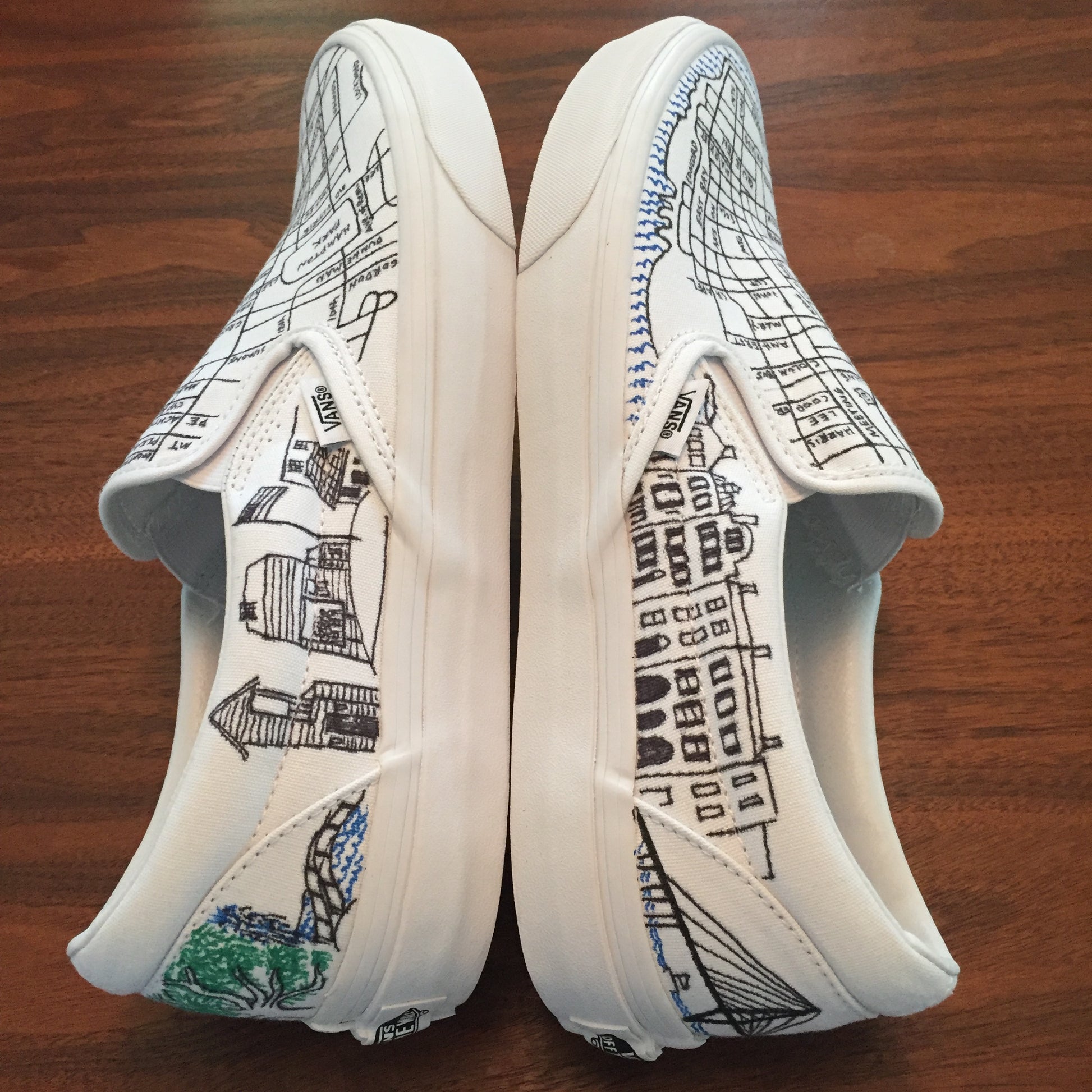 First ever hand-illustrated shoes by Sightsee co-founder Joel Sadler.