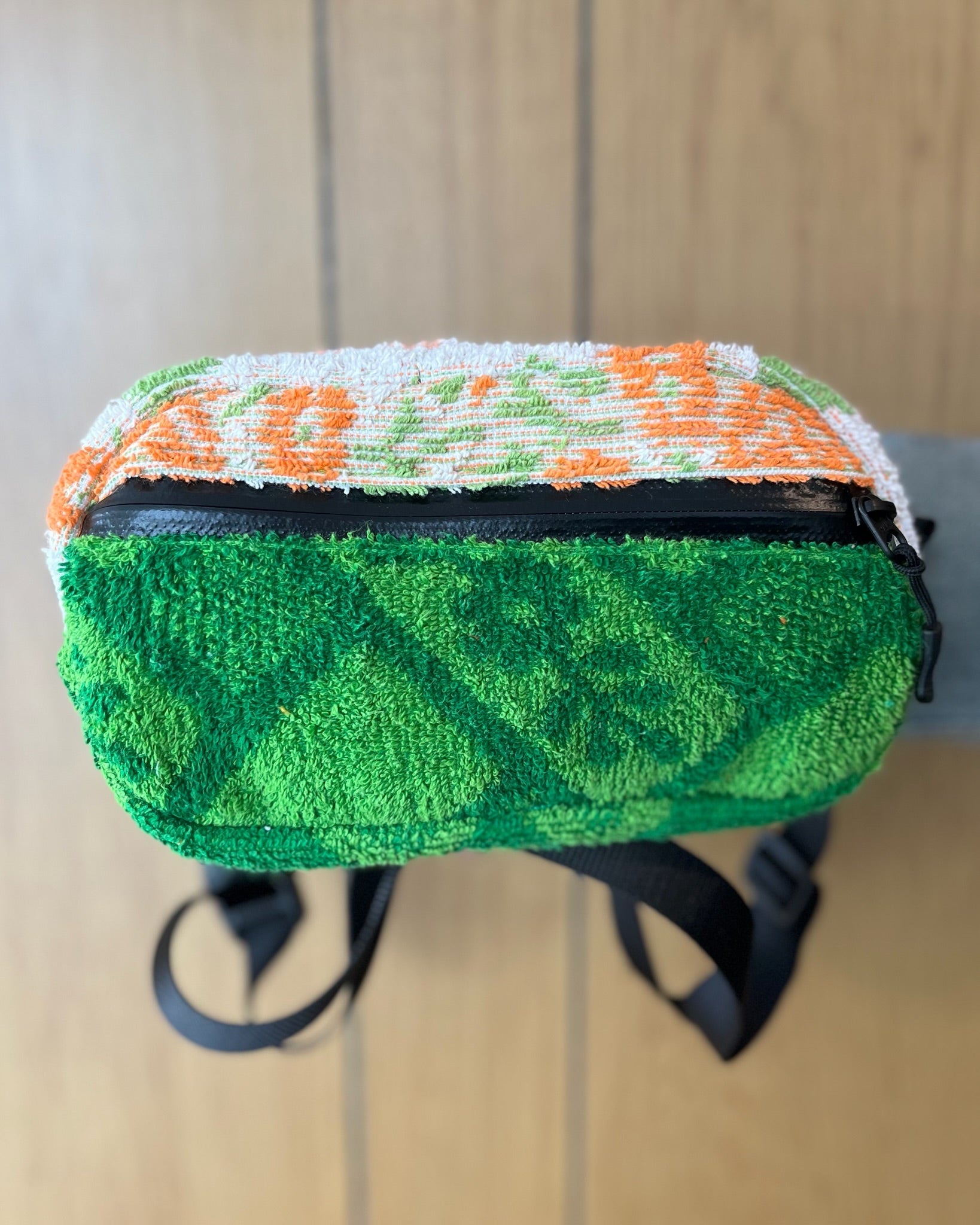 About the collection: We carefully sourced vintage towels from the 60s and 70s, and paired them with J. Stark's classic, durable materials to make a collection of statement-making, one-of-one bags. Each one is handpicked, handmade, and truly one of a kind.