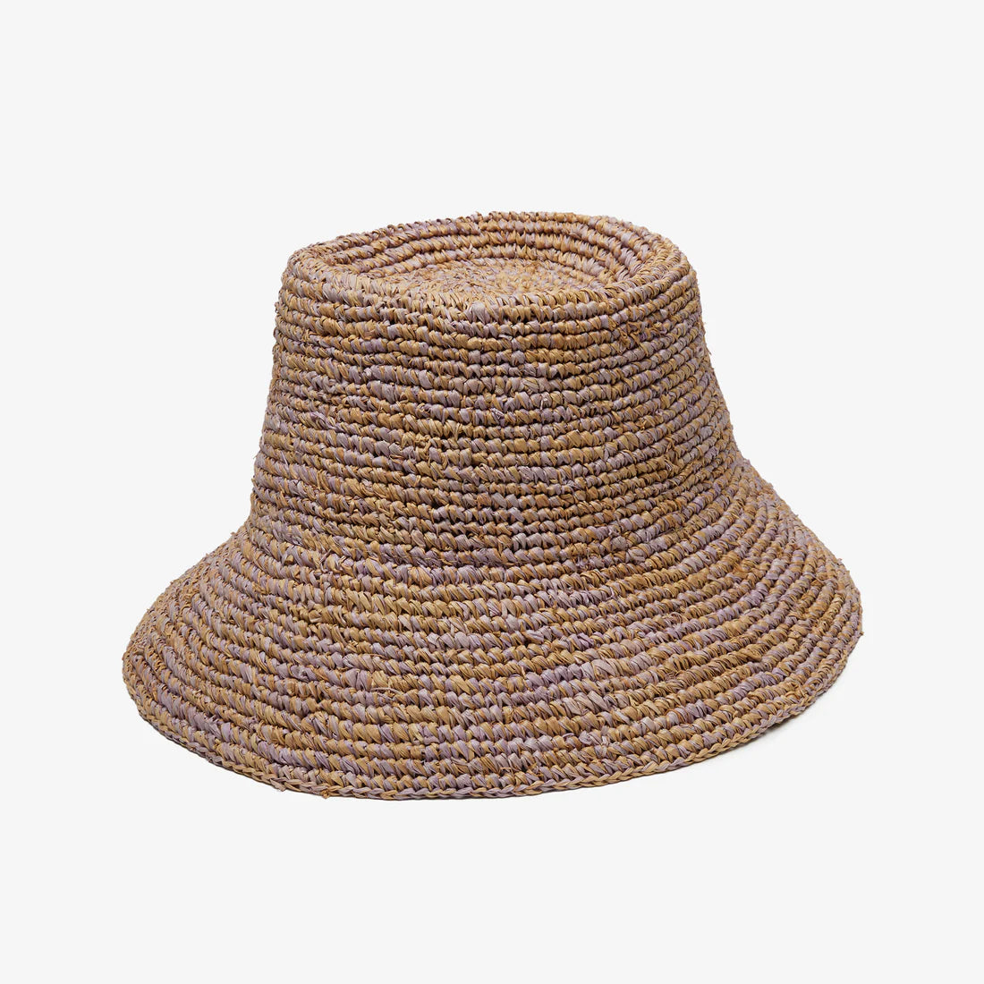 Made from 100% raffia straw, the hand crocheted construction of Wyeth's Lolo bucket hat is easy, breezy. The unique color combo of camel and lavender mauve give this hat a fun twist on a classic neutral.