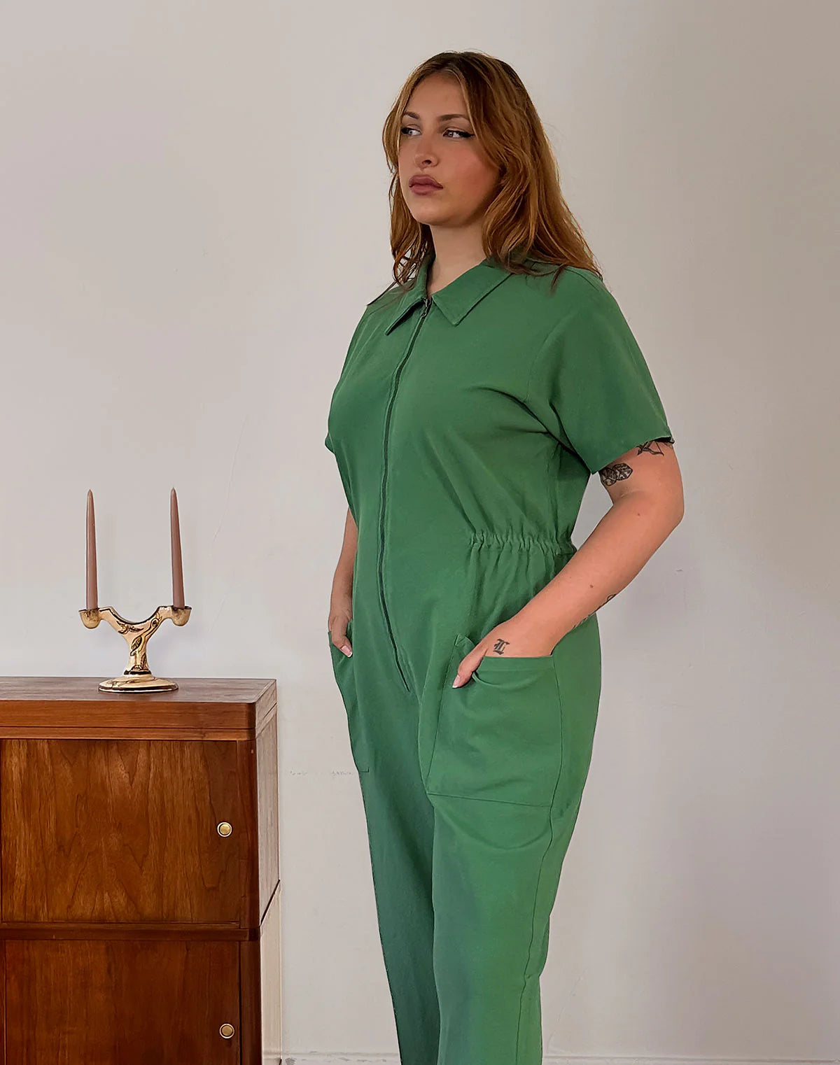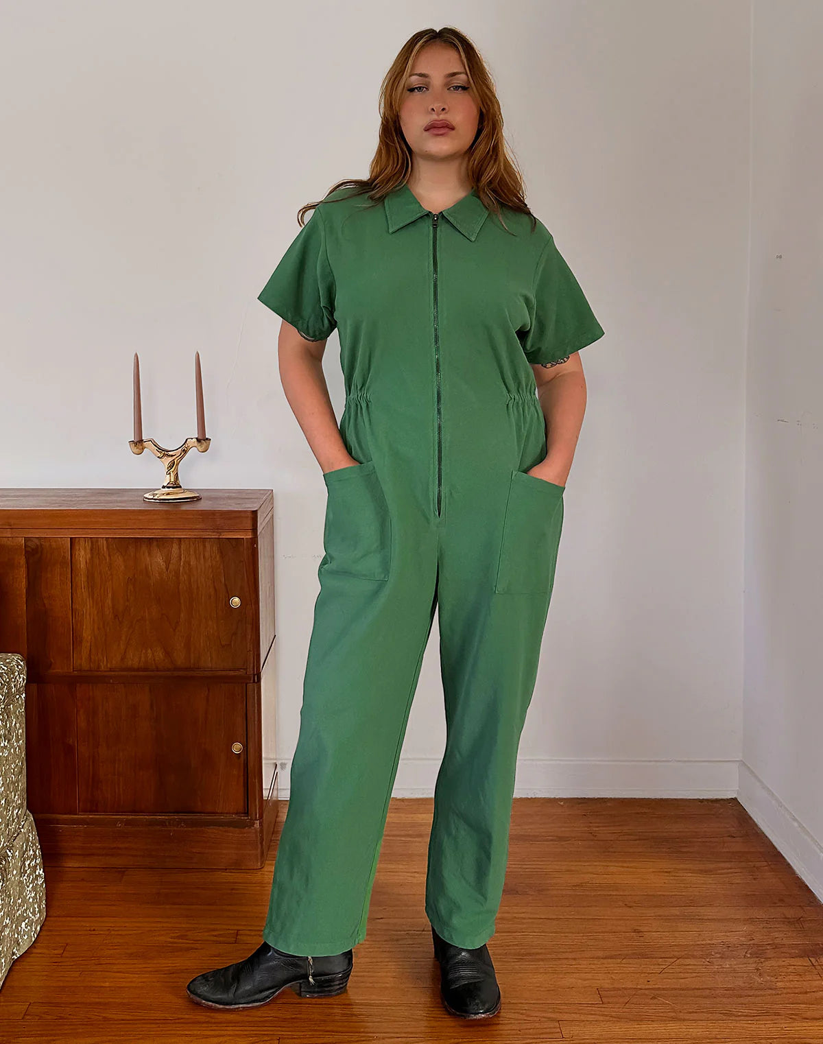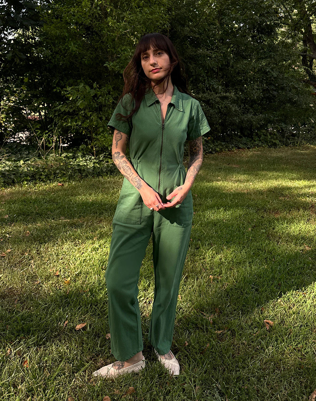 Noble's signature Utility Suit is your perfect on-the-go, down-for-anything outfit. It features a cropped straight leg and a cinched elastic waist for a flattering, comfortable fit. Made from durable yet buttery-soft 8oz Pima cotton canvas, GOTS-certified organic and fully traceable from plant to product. Garment-dyed with eco-friendly processes, each piece is pre-washed and pre-shrunk for an ultra-soft feel and impeccable fit.