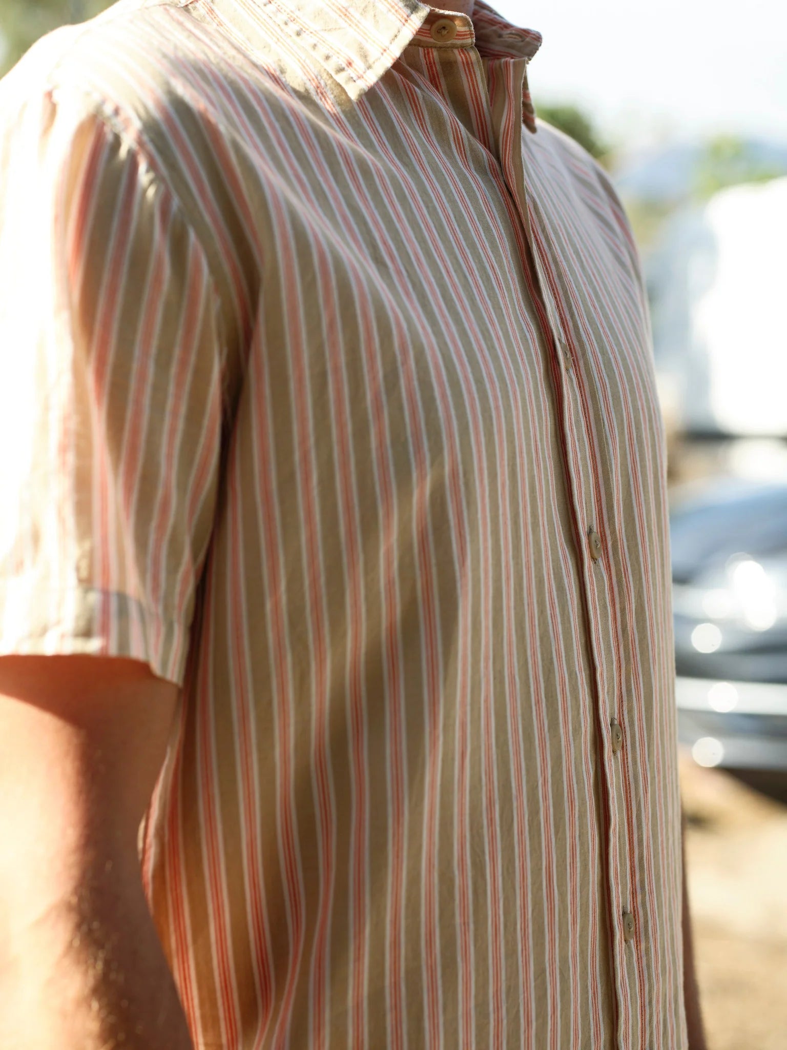 Summer Shirt - Tan and Red Stripe